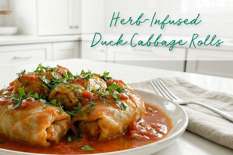 Stuffed cabbage rolls offer a simple way to bring together protein, vegetables, and herbs in a single, balanced dish. This version uses ground duck for a rich, satisfying flavor, paired with finely chopped vegetables that keep the filling moist without the need for added oils. Fresh dill and parsley add brightness, while a light tomato and broth base keeps everything tender as it bakes. The result is a straightforward, delicious meal.
