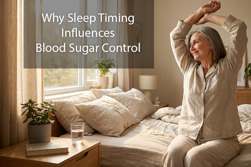 Sleep timing is a critical component of blood sugar management. Aligning sleep with circadian rhythm influences insulin sensitivity, cortisol patterns, and serotonin-melatonin cycles. Even small adjustments to bedtime, wake time, and daily routines can support more stable energy and glucose regulation.